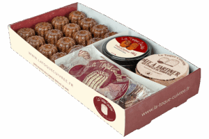 Plongez dans l'univers gourmand du canelé avec notre Coffret Découverte ! Comme son nom l'indique, ce coffret vous permet de découvrir nos produits dérivés du canelé : pâte à tartiner, caramels aux éclats de canelés et verrine de canelés au sirop de rhum. Il contient également 16 canelés Lunch pour une dégustation complète et savoureuse.   Pour connaître la composition et la liste des allergènes des produits de ce coffret, merci de vous référer à la fiche produit concernée.
